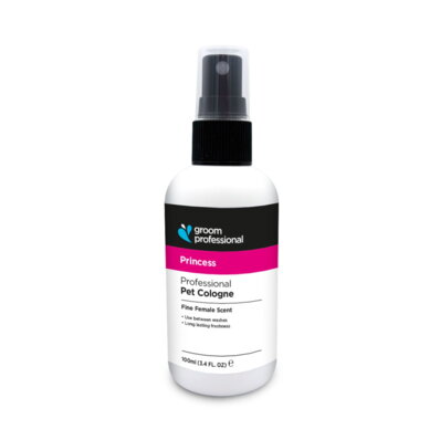 Zapachowa mgiełka dedykowana dla suczek Groom Professional Princess Cologne. Idealna zarówno do codziennego użytku, zależnie od potrzeb, jak i jako ostatni szlif zwieńczający kompletny zabieg pielęgnacyjny.